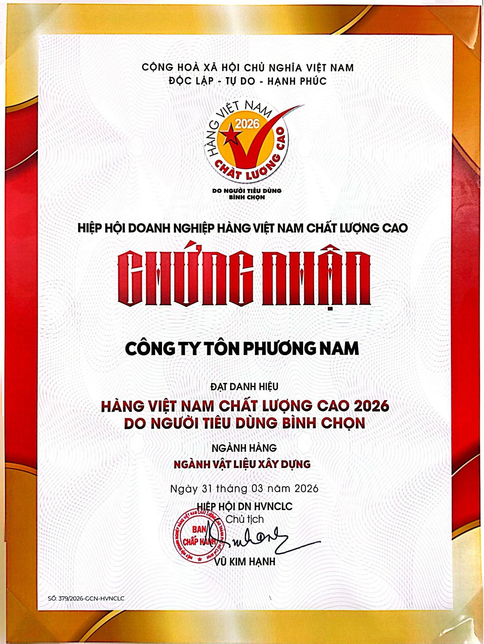 Đây không chỉ là sự ghi nhận cho những nỗ lực không ngừng nghỉ, mà còn là động lực để Tôn Phương Nam tiếp tục đổi mới, nâng cao chất lượng sản phẩm, mang đến những giải pháp tối ưu cho mọi công trình.