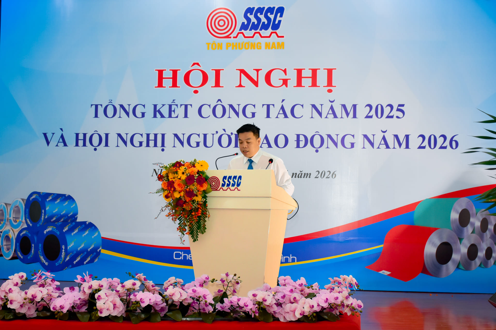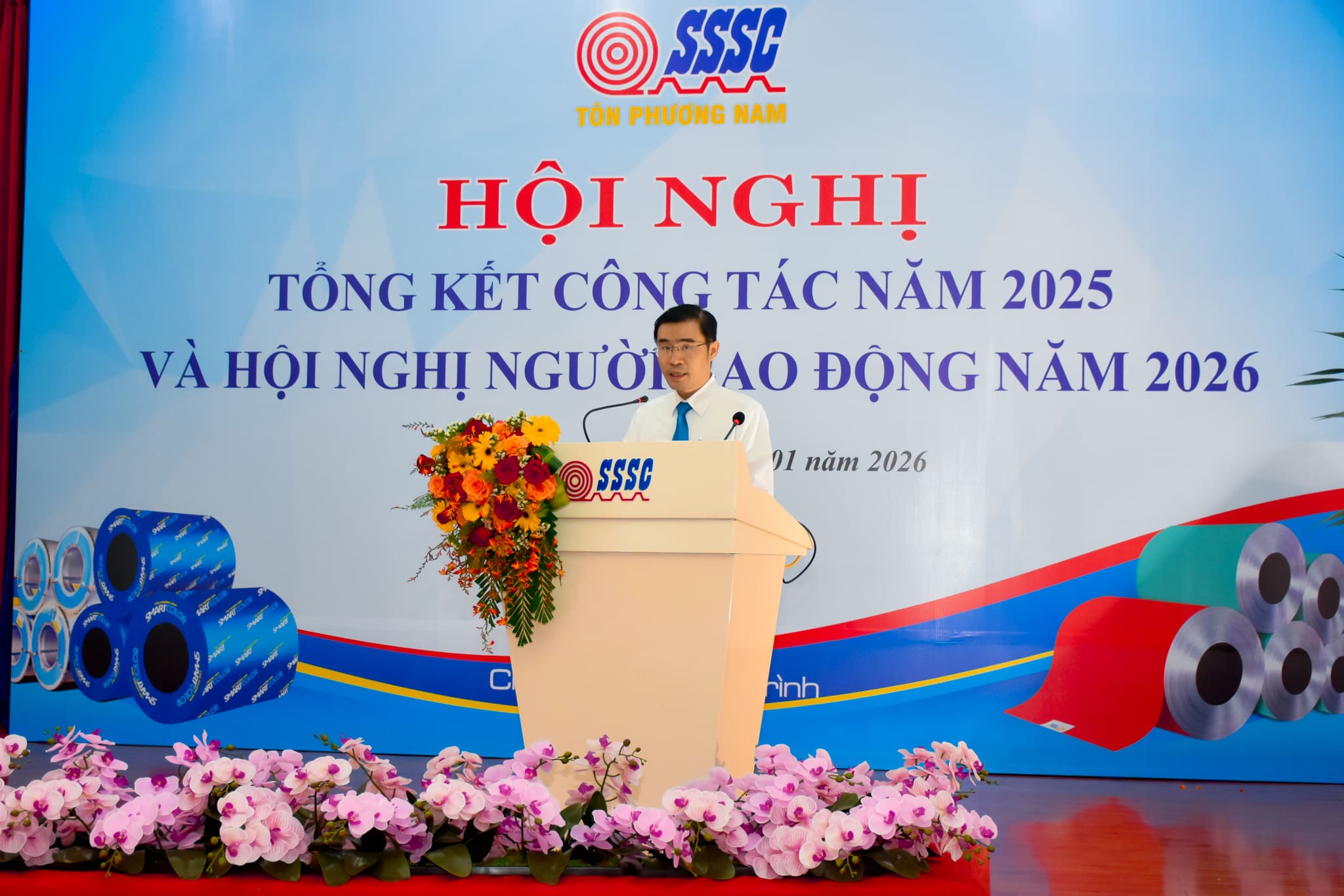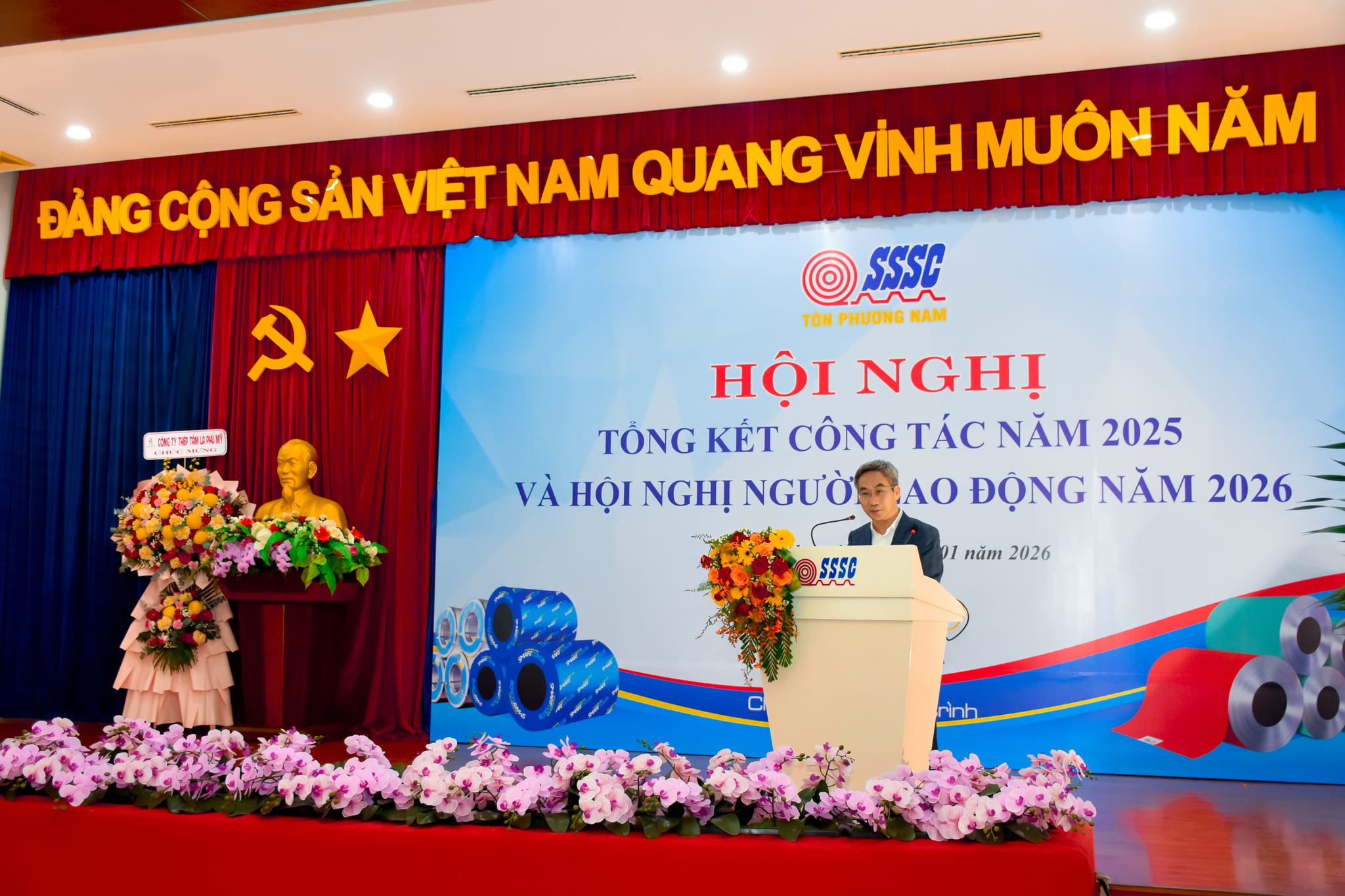 Trong không khí hân hoan chào đón năm mới 2026, ngày 07/01/2026, Công ty Tôn Phương Nam (SSSC) đã long trọng tổ chức Hội nghị Tổng kết công tác sản xuất kinh doanh năm 2025 và Hội nghị Người lao động năm 2026 tại Hội trường Công ty. Hội nghị là dịp để đánh giá toàn diện kết quả đã đạt được, đồng thời xác định phương hướng, nhiệm vụ trong năm mới.