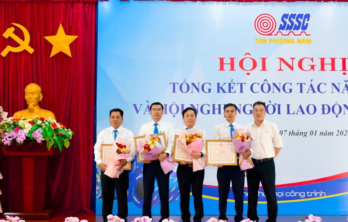 Ông Nguyễn Nguyên Ngọc, Phó Tổng giám đốc TCT, Chủ tịch HĐTV Công ty Tôn Phương Nam trao giấy khen của Tổng Giám đốc Tổng Cty Thép Việt Nam cho cá nhân đã có thành tích tiêu biểu trong phong trào thi dua và hoàn thành xuất sắc nhiệm vụ công tac năm 2025